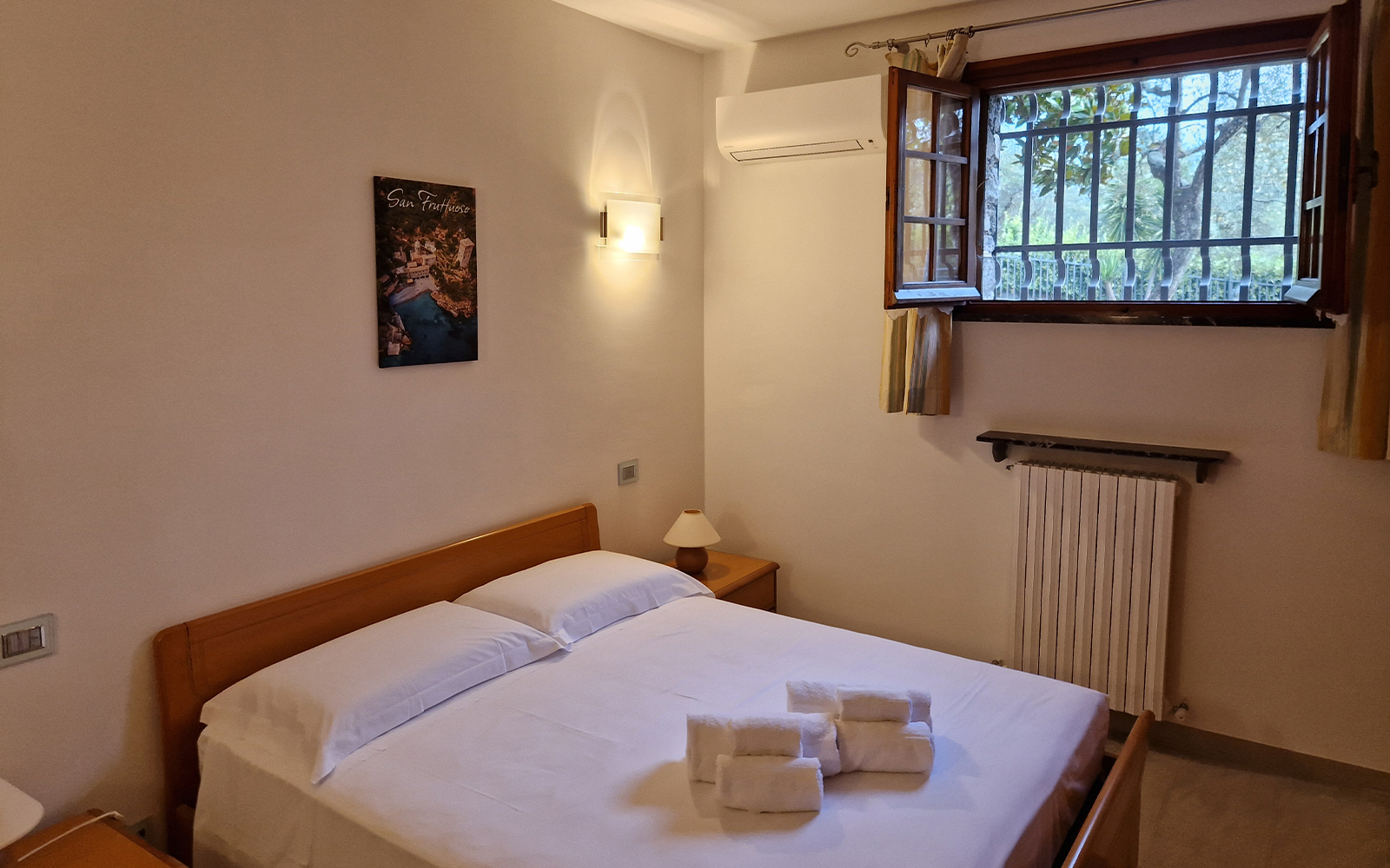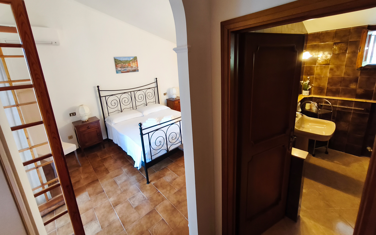 La villa dispone di due ampie camere da letto matrimoniali, entrambe con vista mare e bagno privato, e di una Suite familiare con bagno privato.